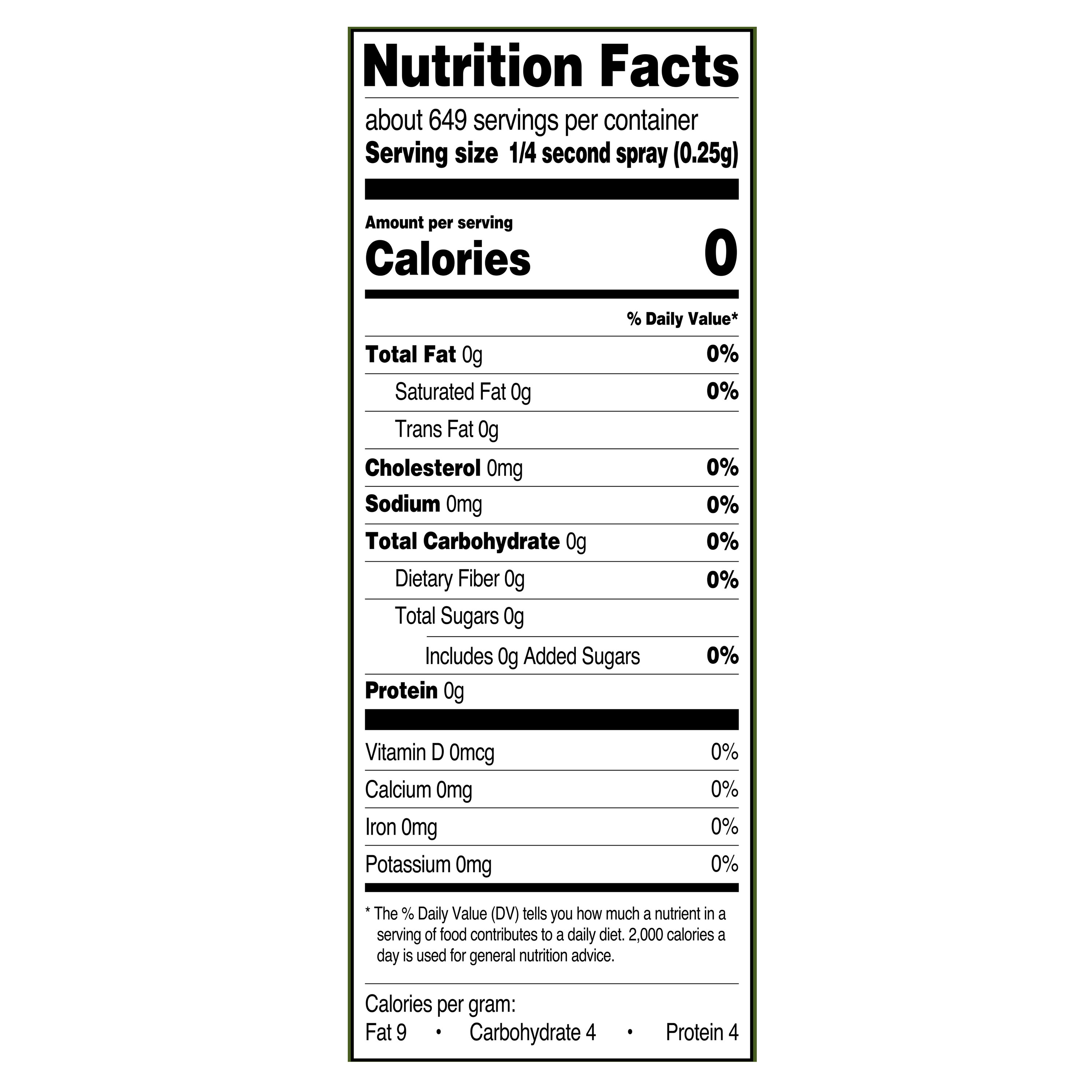 We have adapted ourselves to work in COVID-19 with all the necessary precautions Great Value Extra Virgin Olive Oil Cooking Spray 141g. 659 servings per container Serving size 025 g Amount per serving Calories0 Daily Values Total Fat0g0 Daily Values 0 Saturated Fat00 Daily Values 0 Trans Fat0g Polyunsaturated Fat00g Monounsaturated Fat00g Cholesterol00 Daily Values. Great Value Instant Noodles.